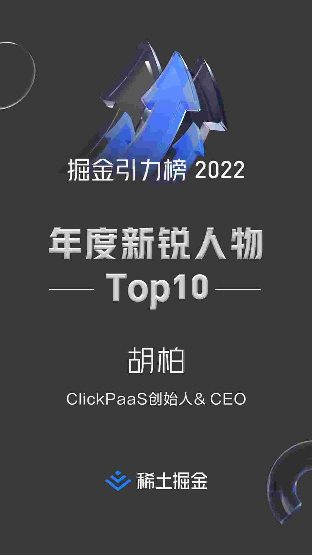 2022年1月6日,,,,稀土掘金社区第一届「掘金未来大会」成功举办,,,,会上发布了“2022 稀土掘金引力榜 年度新锐人物”榜单,,上海爱湃斯科技有限公司(简称NO钱包)创始人及CEO胡柏实力入选年度新锐人物TOP 10。。。